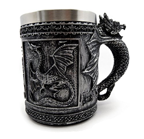 ★ Games of Thrones/Herr der Ringe Bierkrug mit 3D-Drachen-Design: Harz ‚Beautiful kunstvollen Ornamenten, außen mit schwarzem metallic-Effekt Finish. Ein guter Weg, um einen Kaffee oder quaff ein Bier trinken.
